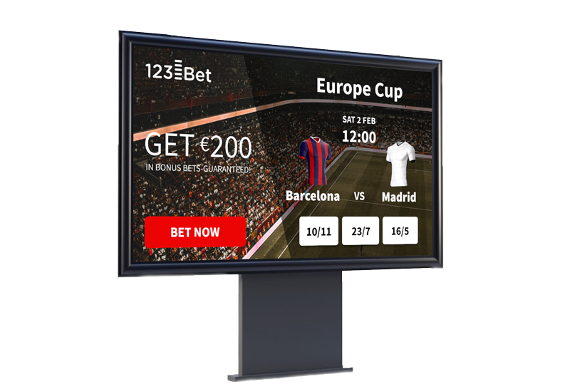 Combining supply tailored to betting and gaming with real-time content delivery across numerous screens, our unique Digital Out Of Home solution is designed to leave a lasting impression on your target audience.