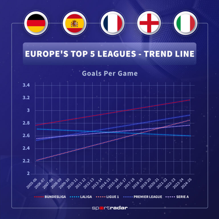 Sportradar analysed more than 98,000 goals scored in Europe’s Top 5 leagues over the last 20 years to determine which competition is the most exciting for the fans to watch – and it’s not the Premier League.